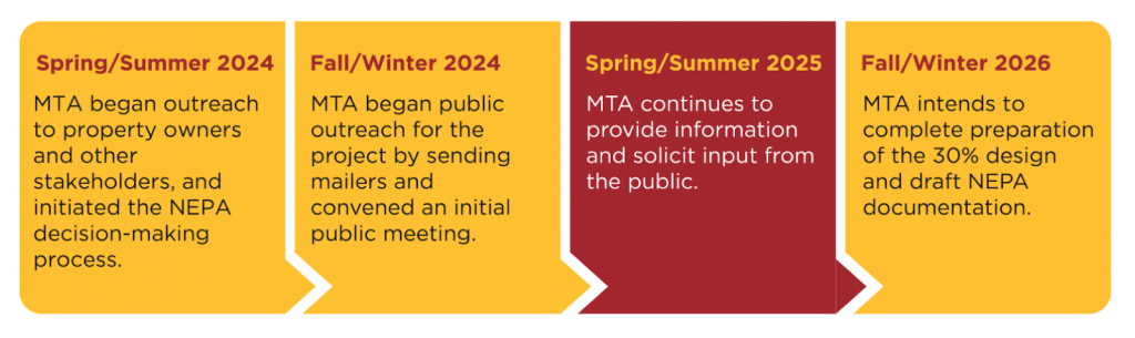 However, MTA is continuing to solicit stakeholder feedback this summer and does not expect to complete 30% design until next fall/winter.