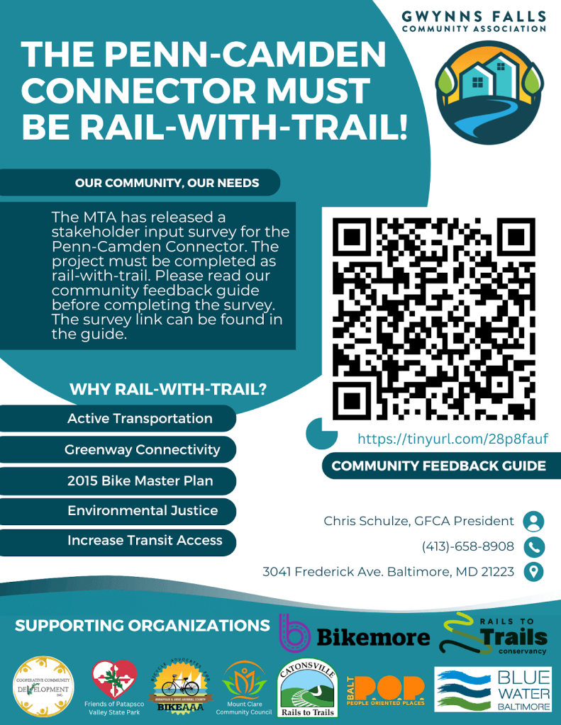 Several individuals and organizations here started a campaign to urge MTA to build the Penn-Camden Connector as a rail-with-trail.