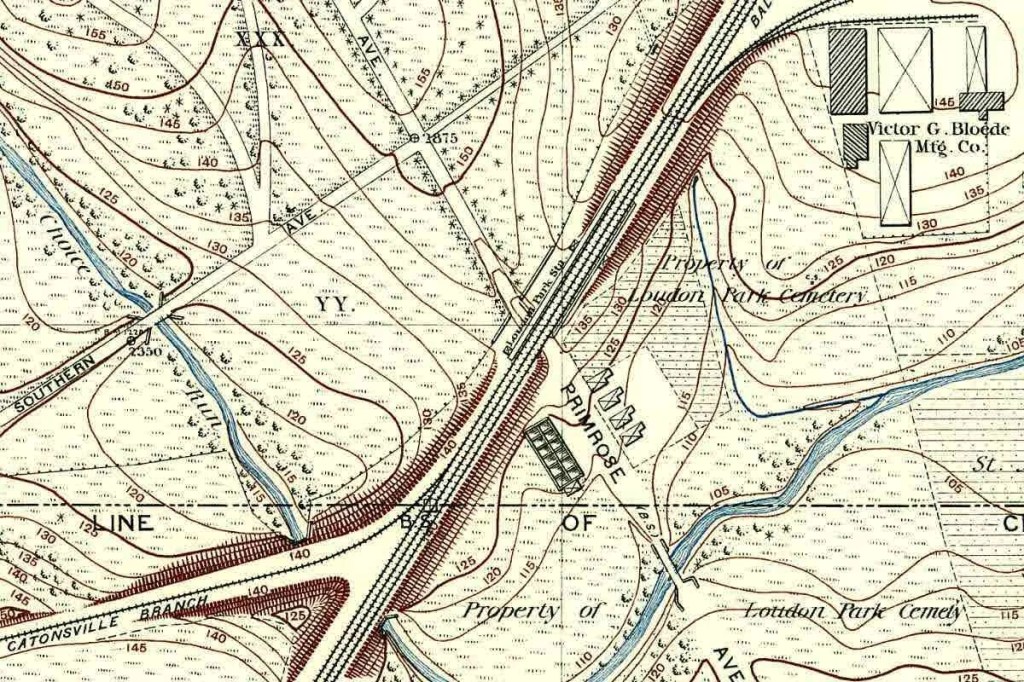 Both maps indicate some previous drive within Baltimore City planning to place a trail along this route. The proposed route can be broken up into a couple of different logistical hurdles; the Loudon Park Cemetary (4), the Primrose Passageway (5), and the Claremont Branch (6).