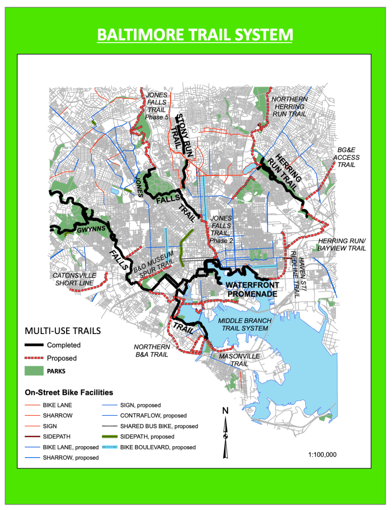 Baltimore Rec and Park’s previous master plans for our city trail system has included this stretch of trail in various ways as indicated by the following maps.